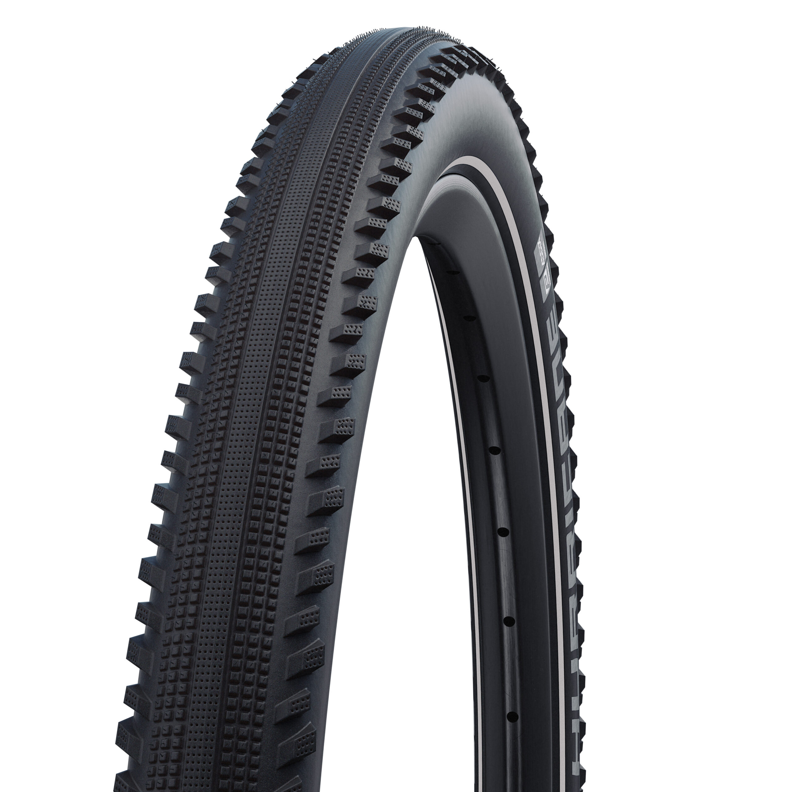 Невисокий, але чіпкий протектор забезпечить хороше зчеплення на твердому дорожньому покритті, а плоска центральна доріжка гарантує низький опір коченню. Бічні блоки, що виступають, відповідають за зчеплення на гравії та ґрунті, а також ефективно працюють на мокрих дорогах. Шипи розташовані так, щоб утримувати колесо при поворотах, що підвищує контроль над велосипедом.