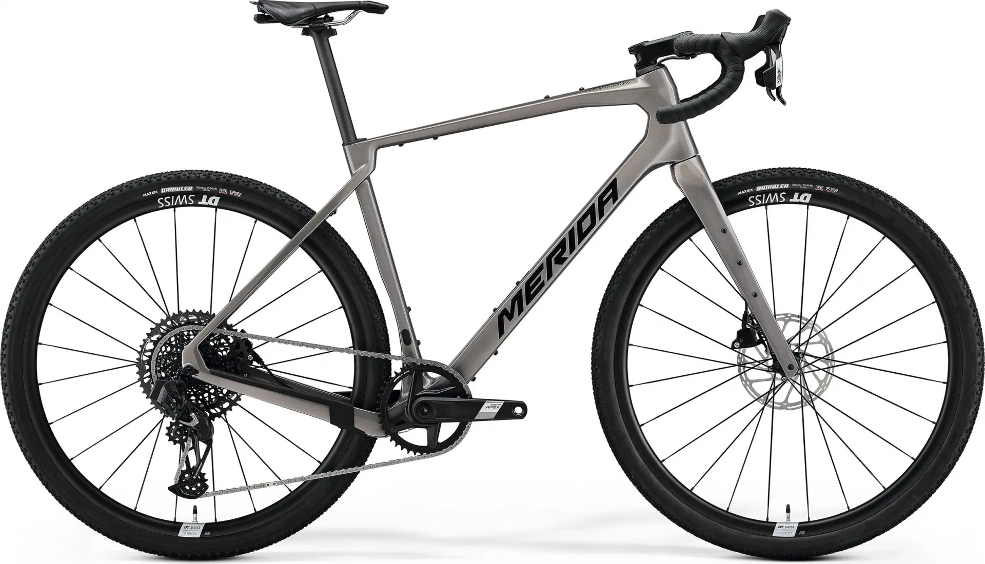 Merida SILEX 8000 — це гравійний велосипед преміум-класу, створений для щоденних пригод, байкпакінгу, багатоденних перегонів або активного використання в будь-яку пору року. Оснащений бездротовою трансмісією Sram Apex AXS з широким діапазоном передач і швидким перемиканням у будь-яких умовах, а також легкими та жорсткими колесами DT Swiss G1800, цей велосипед ідеально поєднує швидкість, надійність і комфорт. В основі — перевірена та відзначена нагородами карбонова рама з опущеною пір’їною, яка дозволяє використовувати покришки до 700×45 мм (або 700×42 мм з крилами), що забезпечує ще більшу прохідність. Геометрія з розслабленим кутом рульової труби, натхненна гірськими велосипедами, гарантує стабільність навіть при повному завантаженні. Завдяки численним кріпленням для багажу, фляг і аксесуарів, SILEX 8000 залишається одним із найуніверсальніших гравійників. Всі моделі мають карбонову вилку з додатковими кріпленнями та внутрішньою маршрутизацією для втулки з динамо. Система Wire Port забезпечує акуратний зовнішній вигляд і зручність встановлення сумок. SILEX 8000 підтримує трансмісії 1x або 2x, що дозволяє адаптувати велосипед під індивідуальні задачі.